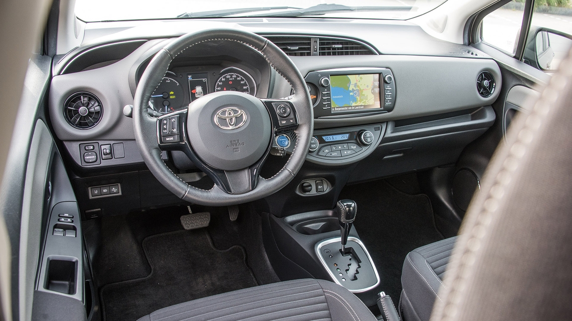 Vanbinnen is de Yaris licht en ruimtelijk. Of je nou klein of groot bent, stuur en stoelen laten zich altijd verstellen tot een fijne zitpositie. Als hybride is de Yaris rap genoeg, maar het motorgeluid houdt zich altijd lekker afzijdig. Middenin het dashboard bevindt zich een groot multimediascherm, met navigatie en Bluetooth. Een fijne plek dus, of je nou onderweg bent naar de supermarkt, of naar een Europese hoofdstad.